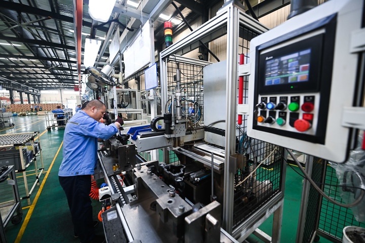 2022年9月27日,在位于浙江省諸暨市店口鎮(zhèn)工業(yè)區(qū)的浙江萬安科技股份有限公司數(shù)字化車間內,工人在流水線上生產作業(yè)。新華社記者 徐昱 攝
