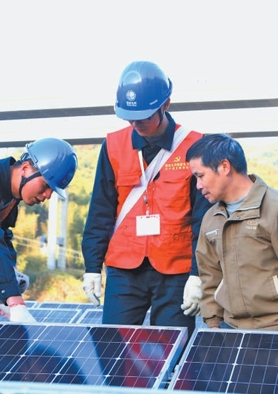國網福建省電力公司員工幫助用戶檢查光伏發(fā)電板。鄭 極攝