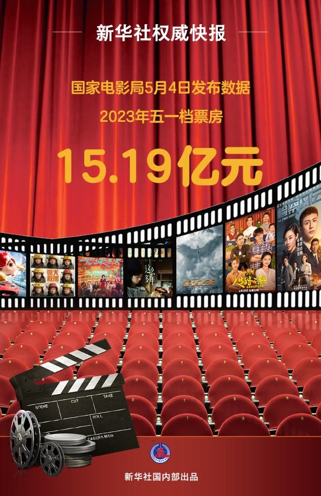 國(guó)家電影局4日發(fā)布數(shù)據(jù),2023年4月29日至5月3日,我國(guó)電影五一檔票房達(dá)15.19億元,影片《人生路不熟》《長(zhǎng)空之王》《這么多年》位列票房榜前三。