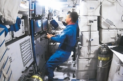 5月11日,天舟六號貨運(yùn)飛船與空間站組合體完成交會(huì)對接后,天和核心艙內(nèi)的畫面。 新華社記者 郭中正攝