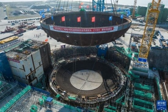 5月29日,在浙江省臺(tái)州市三門(mén)縣,三門(mén)核電二期工程4號(hào)機(jī)組核島鋼制安全殼底封頭順利吊裝就位。這是4號(hào)機(jī)組核島反應(yīng)堆廠房吊裝的首個(gè)大型模塊,標(biāo)志著該廠房主體結(jié)構(gòu)施工開(kāi)始。三門(mén)核電二期工程4號(hào)機(jī)組于3月22日開(kāi)工,整個(gè)二期工程建成投產(chǎn)后,一、二期裝機(jī)總?cè)萘繉⑦_(dá)到500萬(wàn)千瓦,年發(fā)電量預(yù)計(jì)可達(dá)到400億千瓦時(shí)。