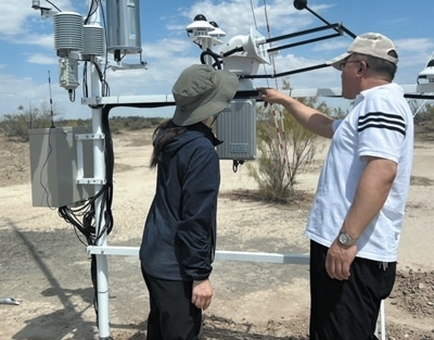 李生宇(右)給學(xué)生講解如何使用輻射觀測(cè)儀。吳月輝攝