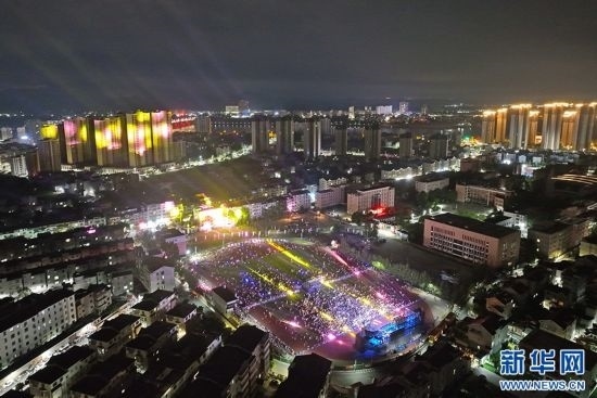 航拍下的萬安鄉(xiāng)村音樂會現(xiàn)場。新華網發(fā) 邱哲 攝
