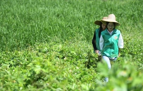 增城區(qū)一處農(nóng)田,種糧大戶沈燕芬(前)查看禾苗長勢。新華社記者鄧華 攝