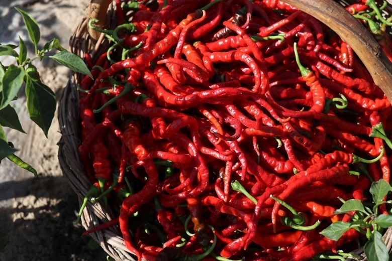 晾曬的花椒和辣椒