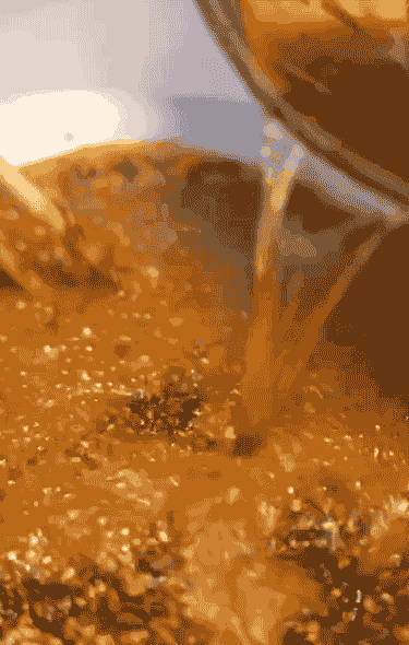 將炸香的熱油分次潑入辣椒面中