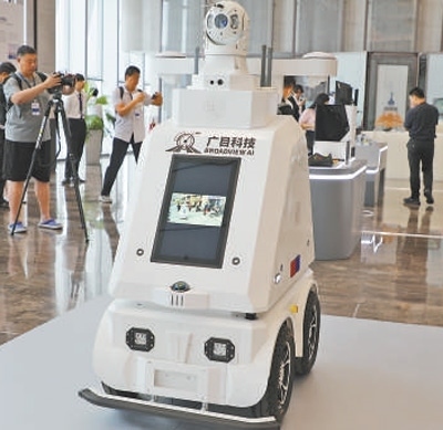在2024蘇州國(guó)際科創(chuàng)大會(huì)場(chǎng)外,廣目科技展出的新款無(wú)人安防巡邏車。