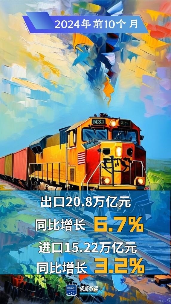 海關(guān)總署7日發(fā)布數(shù)據(jù):2024年前10個月,我國貨物貿(mào)易進(jìn)出口總值36.02萬億元人民幣,同比增長5.2%。其中,出口20.8萬億元,同比增長6.7%;進(jìn)口15.22萬億元,同比增長3.2%。海關(guān)總署統(tǒng)計分析司司長呂大良表示,前10個月我國外貿(mào)平穩(wěn)增長,規(guī)模持續(xù)擴(kuò)大、結(jié)構(gòu)不斷優(yōu)化,全年外貿(mào)質(zhì)升量穩(wěn)目標(biāo)可望實現(xiàn)。