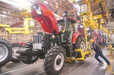新年伊始,工人在河南省洛陽市一家拖拉機生產(chǎn)企業(yè)車間工作。