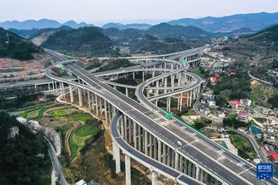 這是3月21日拍攝的貴黃高速公路延伸段馮家莊樞紐(無人機(jī)照片)。