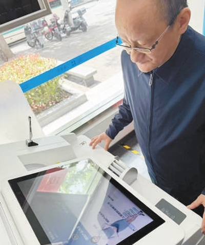 老年客戶(hù)使用智能柜員機(jī)辦理業(yè)務(wù)。