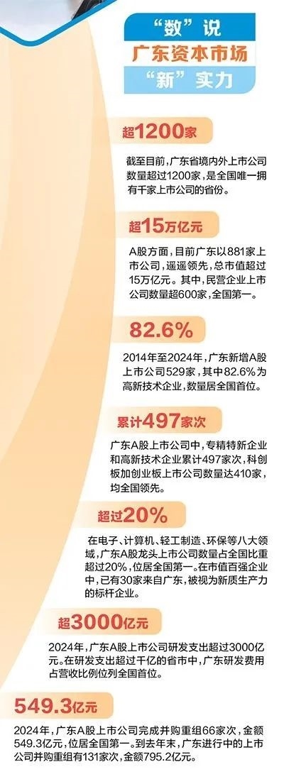 這一并購為廣東助力企業(yè)打通技術(shù)突破與產(chǎn)業(yè)升級通道,實(shí)現(xiàn)跨越式發(fā)展寫下有力注腳。2024年,上市粵企完成并購重組66家次,金額549.3億元,位居全國第一;截至今年一季度末,廣東進(jìn)行中的上市公司并購重組有146家次,金額562.1億元。更令人振奮的是,廣東已成立資本市場并購重組聯(lián)盟、創(chuàng)立并購重組“標(biāo)的庫”、明確大力發(fā)展并購基金和二手份額轉(zhuǎn)讓基金,為上市公司提質(zhì)增效、戰(zhàn)略轉(zhuǎn)型開辟“快車道”。
