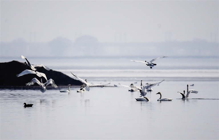 “現(xiàn)在湖面上的候鳥也就1萬(wàn)多只,等到4月份的時(shí)候,候鳥才會(huì)大量歸來(lái),屆時(shí)湖面上將出現(xiàn)4~5萬(wàn)只候鳥集聚的畫面,很是壯觀?!蓖鯊?qiáng)每每說(shuō)起候鳥都很感慨,他說(shuō),隨著環(huán)境變好,候鳥越來(lái)越多,去年更是首次出現(xiàn)了紅腿鶴。為了保護(hù)候鳥安全過(guò)境,他們從2月中旬開始24小時(shí)不間斷巡視,并走街串戶進(jìn)行保護(hù)野生動(dòng)物的宣傳,突擊檢查轄區(qū)內(nèi)餐飲企業(yè),確保不會(huì)出現(xiàn)濫食野生動(dòng)物的現(xiàn)象。同時(shí),森林公安部門還在網(wǎng)上排查,嚴(yán)打網(wǎng)上交易野生動(dòng)物行為。