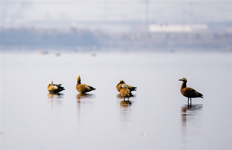 土默特左旗森林公安局副局長(zhǎng)王強(qiáng)告訴記者,隨著生態(tài)環(huán)境的日益改善,海流水庫(kù)已成為候鳥遷徙途中的重要棲息“驛站”,每年春秋兩季在海流水庫(kù)過(guò)境的候鳥高達(dá)百萬(wàn)只,種類涉及天鵝、遺鷗、大雁、蒼鷺等十余種,其中不乏國(guó)家一、二級(jí)重點(diǎn)保護(hù)動(dòng)物。更可喜的是,現(xiàn)在海流水庫(kù)已經(jīng)有赤麻鴨長(zhǎng)期駐留。