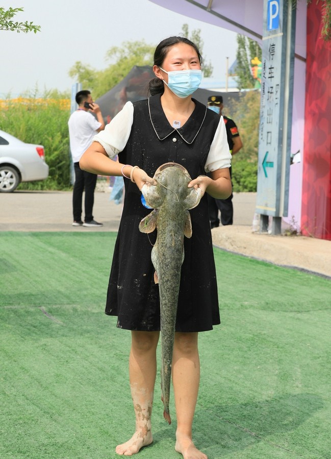 “抓到了,好大一條!”一位男士從池塘中抓到了一條1米多長(zhǎng)的大魚(yú),旁邊眾多參與者紛紛投來(lái)羨慕的目光。