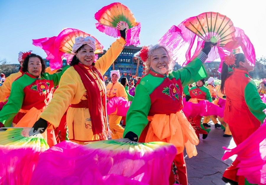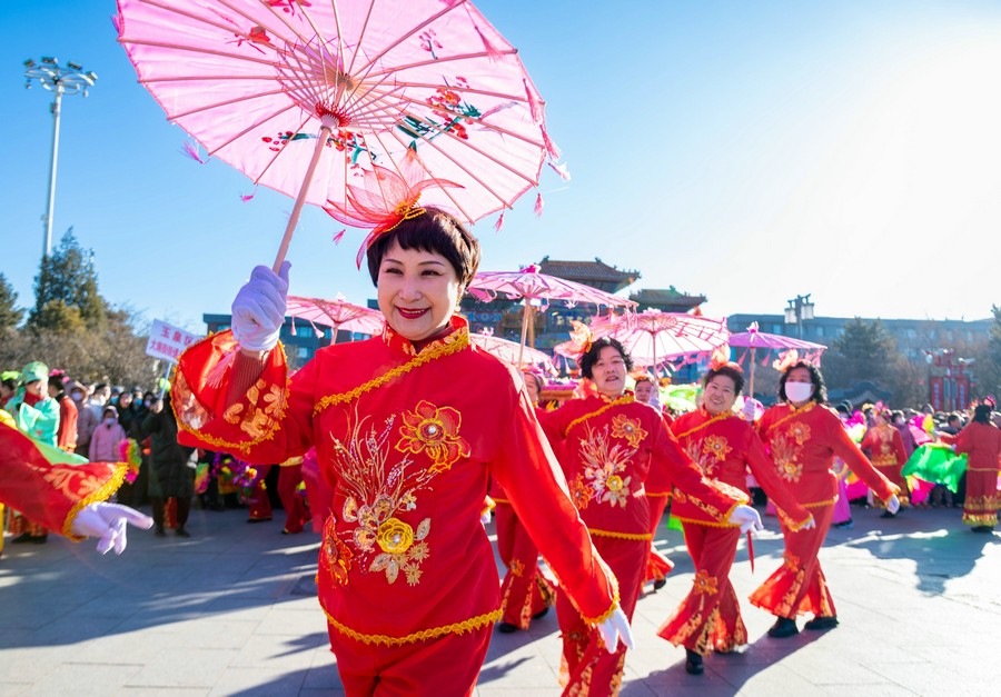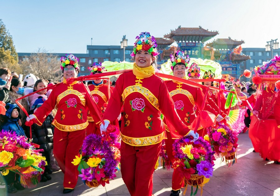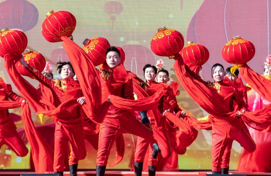 2024年2月15日,演員在呼和浩特新春文化廟會(huì)開(kāi)幕式上表演。丁根厚 攝