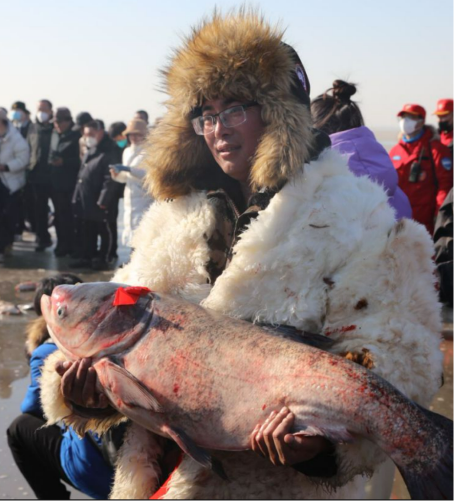 據(jù)了解,哈素海第一屆冰雪旅游節(jié),頭魚現(xiàn)場(chǎng)拍賣出6.8萬元的價(jià)格,2024年頭魚拍賣成交價(jià)為40.8萬元。