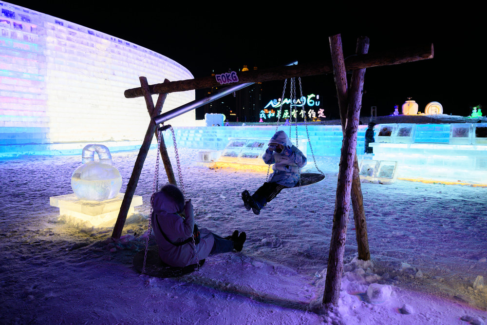 游客在《冰雪芳華》主題樂園內(nèi)體驗