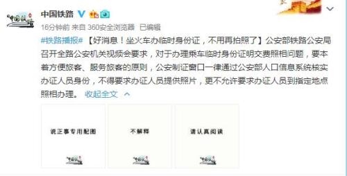 同時(shí),公安部鐵路公安局還要求,對辦理乘車臨時(shí)身份證明相關(guān)公告、須知等再次進(jìn)行排查,清理辦證需提供照片相關(guān)內(nèi)容。