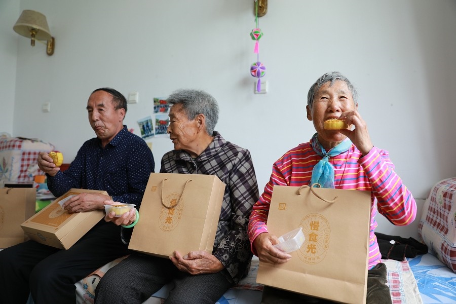 崔玉蘭老人熱情地邀請大家走進她的臥室。安德爾打開一盒月餅遞給了崔玉蘭老人?!昂贸?,好吃!”老人嘗了嘗月餅說道。