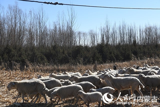 內蒙古初冬,暖陽微燥。牧民楊寶寶的100多只羊正在院子前的空地上曬太陽。雪白的羊群映得小院磚明瓦亮。楊寶寶說話時,嘴角總是上揚的,黝黑的皮膚上笑出深深的褶子。