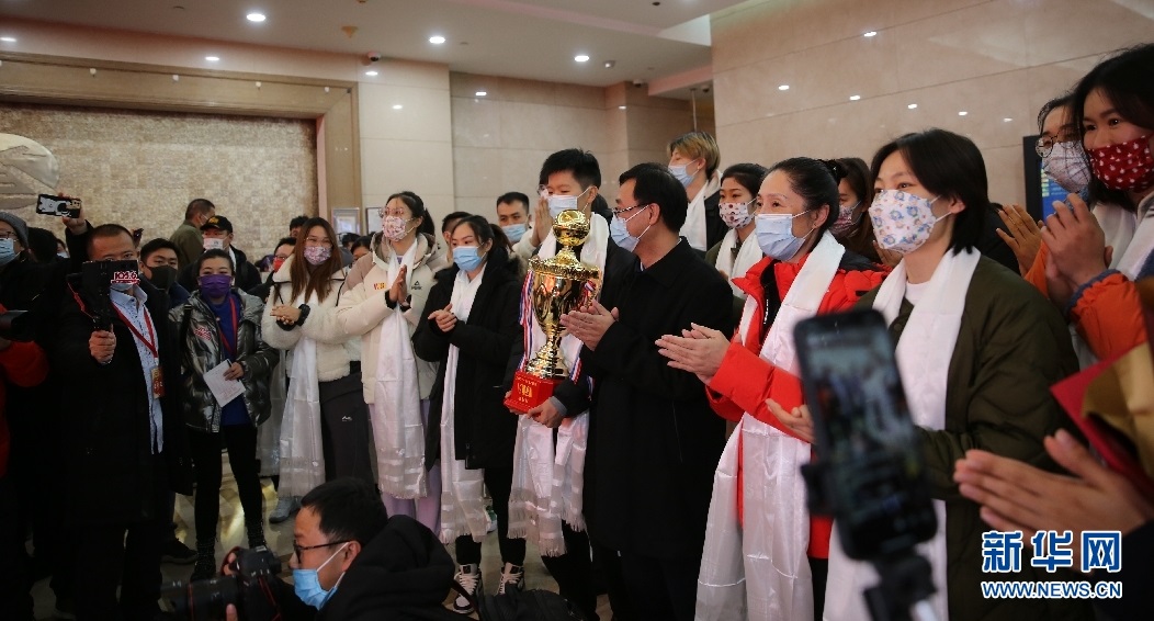 2022年1月3日晚,WCBA衛(wèi)冕總冠軍內(nèi)蒙古農(nóng)信女籃載譽(yù)歸來(lái),在呼和浩特白塔國(guó)際機(jī)場(chǎng)受到球迷的熱烈歡迎。
