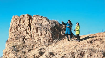 高曉梅(右)在內(nèi)蒙古烏蘭察布市涼城縣考察長城時向羊倌問路。