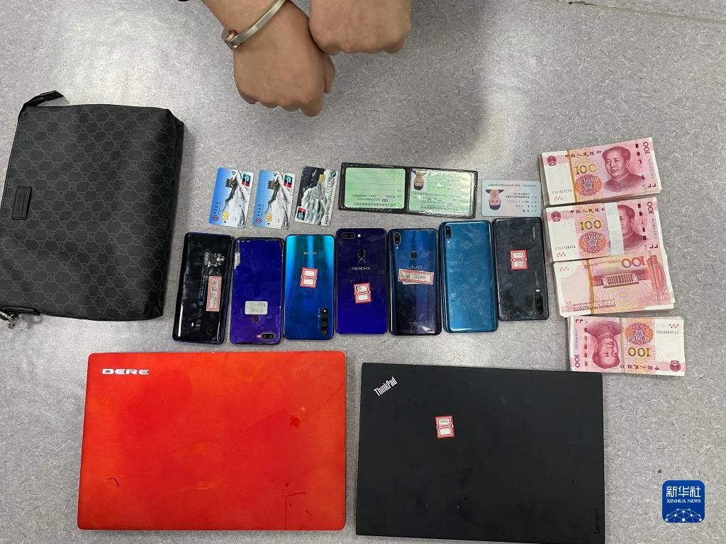 這是民警在現(xiàn)場查獲的部分犯罪工具及涉案資金。(受訪單位供圖)