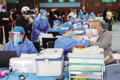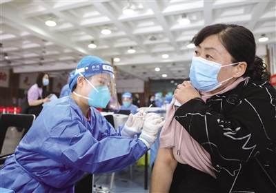 在接種臺前,醫(yī)護(hù)人員分工明確,核驗(yàn)接種人群身份信息、詢問病史和疫苗接種情況,每個環(huán)節(jié)有條不紊地進(jìn)行著。