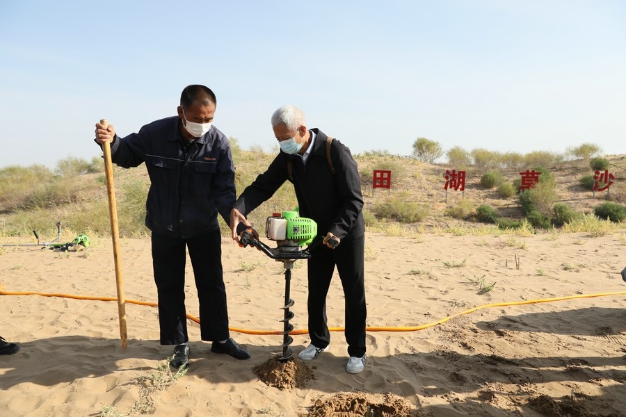 探訪團(tuán)成員體驗(yàn)“螺旋鉆植樹(shù)法”植樹(shù) 記者 張楊攝影