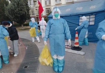 在附屬醫(yī)院,像龐云霞一樣在封控小區(qū)“就地上崗”的黨員“大白”還有許多,入戶采核酸、錄信息,參與小區(qū)消殺清潔,貢獻(xiàn)出自己的一份力量。