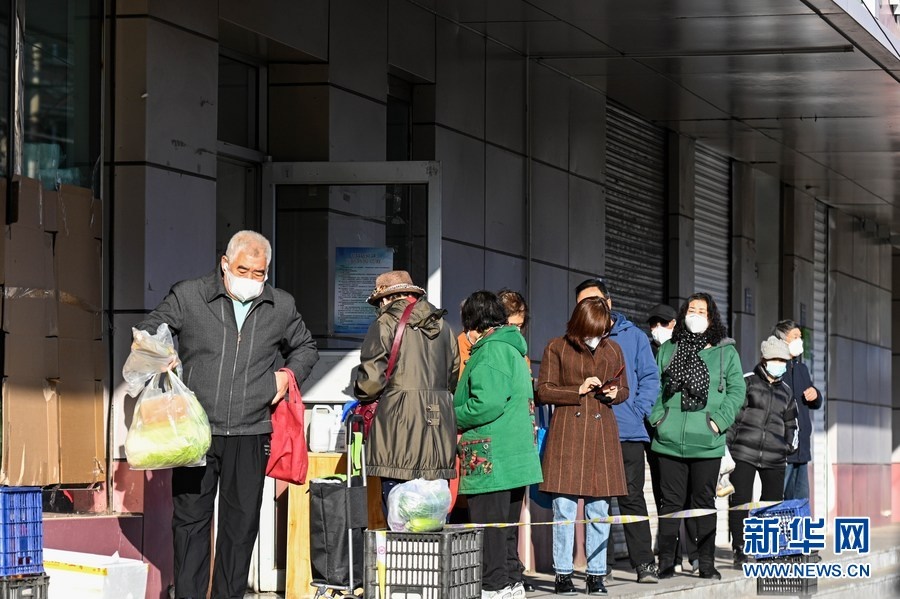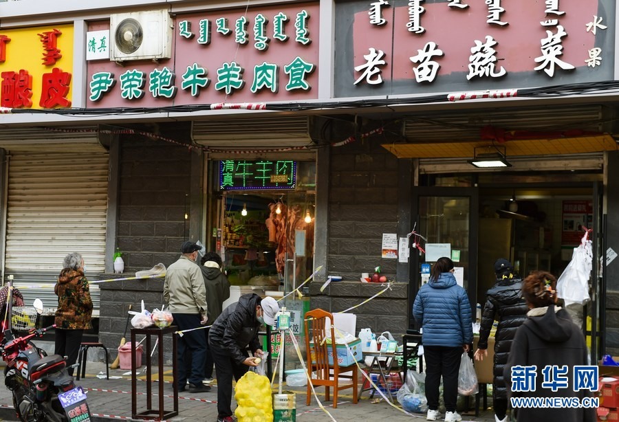 11月17日,市民在呼和浩特市新城區(qū)的商店排隊(duì)購(gòu)物。新華社記者 王澤聰 攝