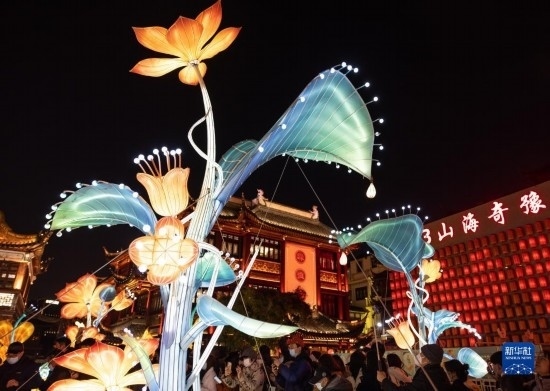 2月15日,市民和游客在上海豫園賞燈。