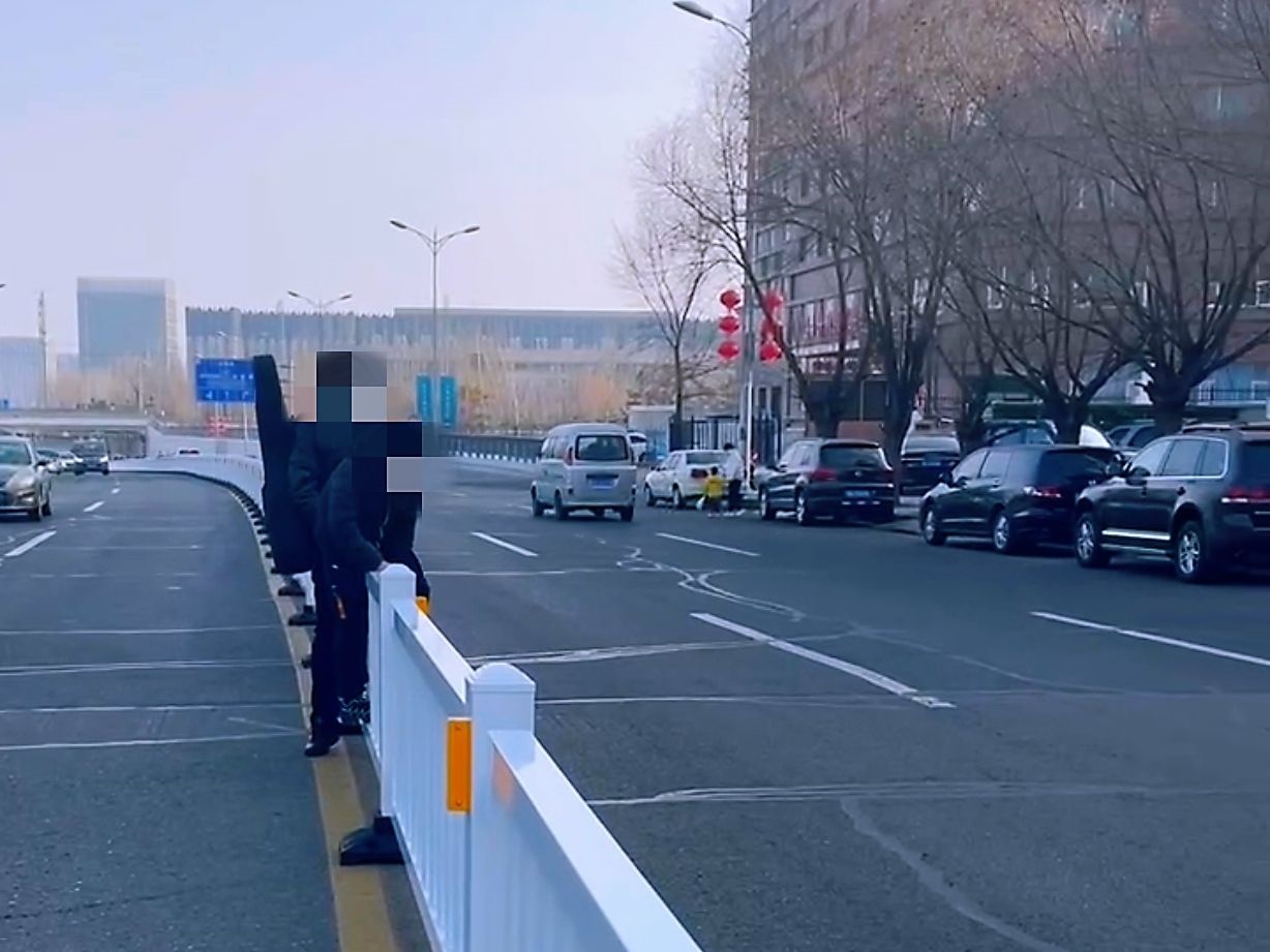 2月18日下午,記者來到興泰東河灣小區(qū),看到在北垣街和騰飛路十字路口至海東路與騰飛路交叉口之間的護欄顏色較新,護欄全長有約一公里,在小區(qū)居民進出的位置或者公交車站牌附近沒有設(shè)置開口。有一些公交車下車的乘客,看往來車輛少時便冒險翻越護欄。