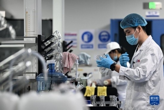 在天津海河乳品有限公司創(chuàng)新研發(fā)中心,工作人員在對產(chǎn)品進行檢測(2月20日攝)。