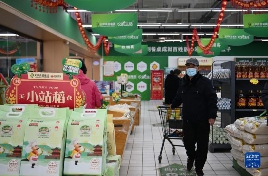顧客在天津食品集團津農(nóng)精品體驗店選購產(chǎn)品(2月23日攝)。
