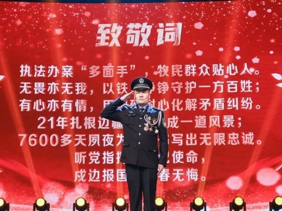 “有選擇就有犧牲,就像我們的愛情一樣,你愛著我們這個(gè)家,我愛著邊境和你,希望我們的生活圓圓滿滿!”在2022年度內(nèi)蒙古自治區(qū)“十大法治事件暨十佳法治人物”頒獎(jiǎng)典禮上,黃健對屏幕前的妻子深情講述。這段黃健對妻子多年來默默承受和付出的真情告白,贏得在場全體觀眾雷鳴般的掌聲。