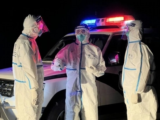 圖為疫情期間,黃健現(xiàn)場帶領(lǐng)民警開展防疫查驗(yàn)工作