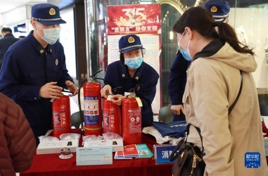 當(dāng)日,上海長寧消防救援支隊(duì)聯(lián)合市場(chǎng)監(jiān)管部門在轄區(qū)一家大型商場(chǎng)內(nèi),舉行“3·15 ‘藍(lán)朋友’給你支招”活動(dòng),為市民群眾現(xiàn)場(chǎng)講解消防產(chǎn)品真?zhèn)蔚谋鎰e方法,并示范如何正確使用消防產(chǎn)品,共同筑牢消防安全“防火墻”。