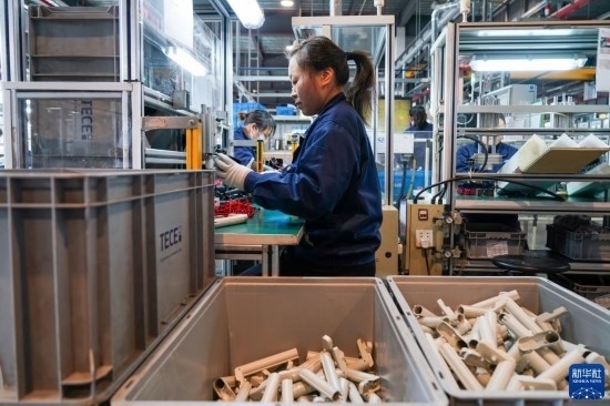 工人在位于太倉市高新區(qū)的帝希潔具系統(tǒng)(蘇州)有限公司生產(chǎn)車間內(nèi)進行加工作業(yè)(3月16日攝)。