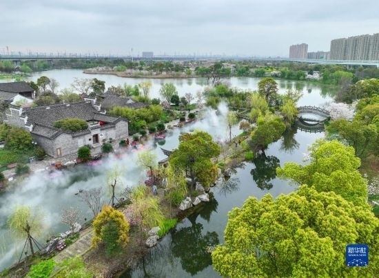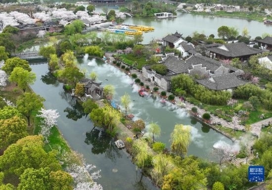 近日,浙江省寧波市植物園內的櫻花、海棠、郁金香等競相綻放,與垂柳、古建筑等相互映襯,構成一幅幅和美的春景。