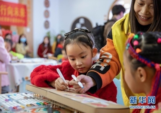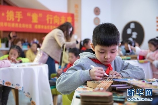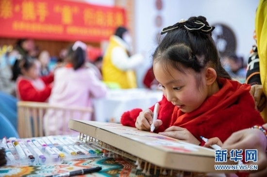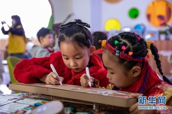 8歲的土旦卡卓是來自青海玉樹藏族自治州的藏族小朋友,她在為手中紙質(zhì)瑤琴涂畫的同時(shí)也學(xué)習(xí)著其他民族的文化風(fēng)俗。