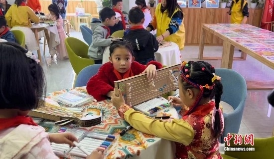 小朋友們用環(huán)保材料制作“民族樂器”。中新網(wǎng)記者 劉湃 攝