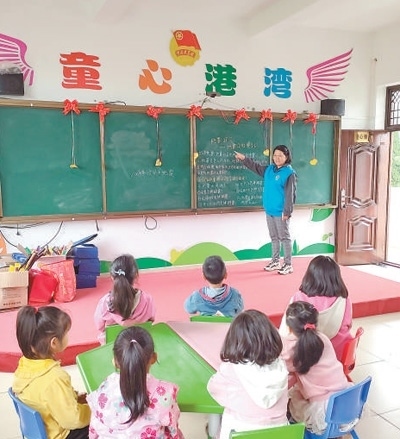 有著十幾年幼兒教育經(jīng)驗(yàn)的劉蓮娟,就這樣被村里推薦為童伴媽媽。同時(shí),她還是螺溪鎮(zhèn)一家幼兒園的老師,住在鎮(zhèn)里。每到周末,她便騎上電動自行車,往返于村鎮(zhèn)之間,每周在“童心港灣”開展10多個(gè)小時(shí)的親情連線、閱讀陪伴、文體項(xiàng)目、家訪校訪等活動。
