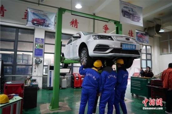 學生們正在老師指導下進行汽車維護保養(yǎng)、機械故障診斷等操作。中新網(wǎng)記者 劉湃 攝
