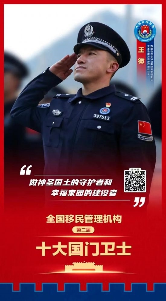 國(guó)家移民管理機(jī)構(gòu)十大國(guó)門衛(wèi)士每3年評(píng)選表彰一次,獲評(píng)人員是全國(guó)移民管理警察隊(duì)伍中政治立場(chǎng)堅(jiān)定、能力素質(zhì)過硬、工作實(shí)績(jī)卓著、紀(jì)律作風(fēng)優(yōu)良、模范作用顯著的先進(jìn)典型,是新時(shí)代移民管理警察的杰出代表。他們忠誠(chéng)履職、無(wú)私奉獻(xiàn),在捍衛(wèi)國(guó)家政治安全、維護(hù)國(guó)門邊境穩(wěn)定、促進(jìn)經(jīng)濟(jì)社會(huì)發(fā)展過程中作出了突出貢獻(xiàn),生動(dòng)反映了國(guó)家移民管理體制改革的豐碩成果,展示了移民管理警察良好精神風(fēng)貌,展現(xiàn)了移民管理機(jī)構(gòu)新形象、新作為。