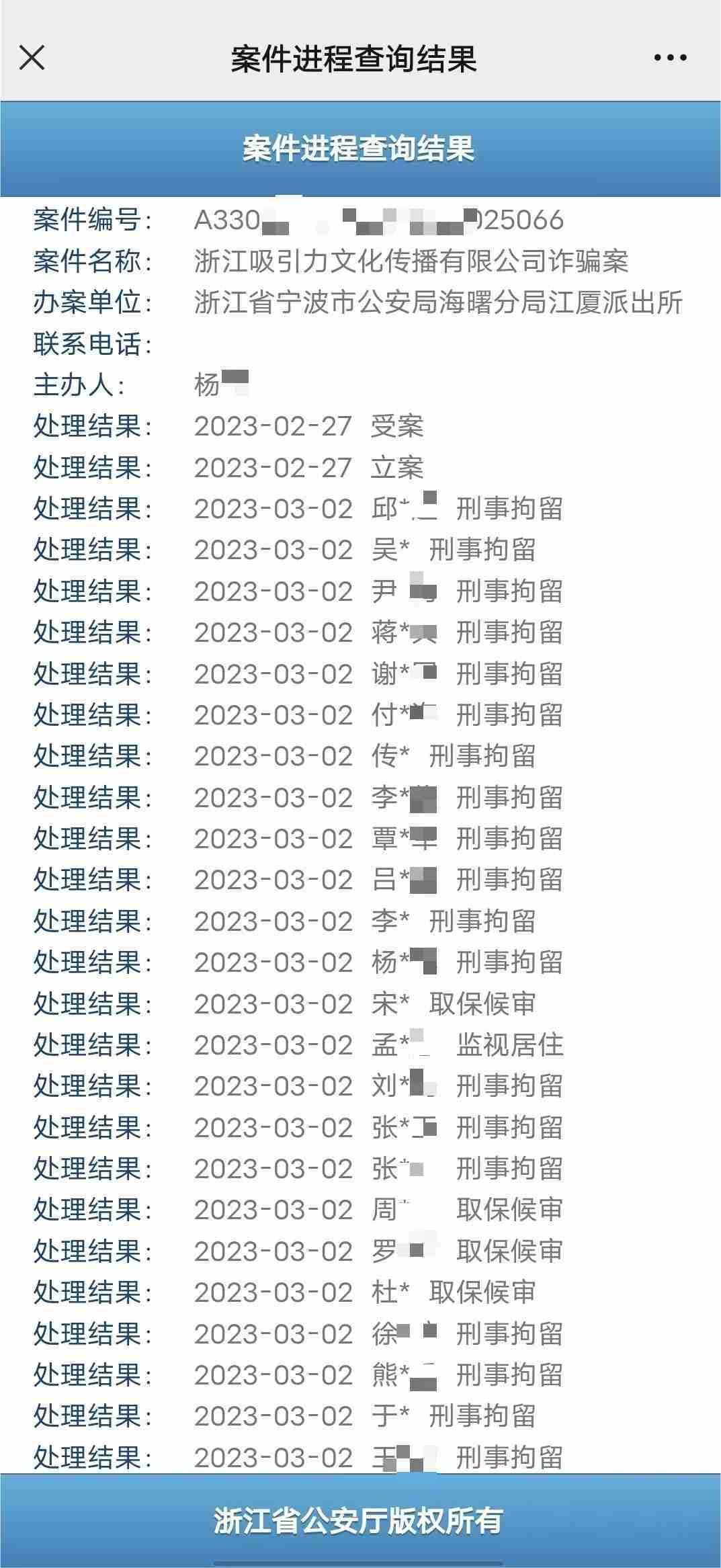 2月22日至24日,有學(xué)員臥底完寧波的課程后,劉文軍等人以詐騙為由,向?qū)幉ň綀?bào)案,并提供相應(yīng)材料。2月27日,警方對(duì)吸引力公司以“詐騙案”進(jìn)行立案調(diào)查。