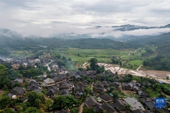 云南省普洱市瀾滄拉祜族自治縣老達(dá)保村夏日景色(2022年7月5日攝,無(wú)人機(jī)照片)。