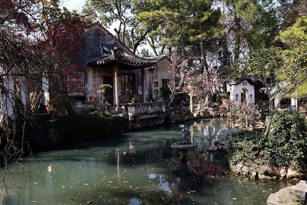 初見影園,第一眼并不算驚艷。斑駁的紅磚外墻、90年代常見的用以防盜的玻璃碎片扎進(jìn)墻頭邊沿,似乎就是鄉(xiāng)村里最普通的宅院,很難和蘇州園林扯上關(guān)系。不過,一推開門,影園就開始不動(dòng)聲色地“顯山露水”。