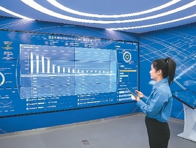 2月24日,在山東省東營經濟技術開發(fā)區(qū)的東營工業(yè)互聯網創(chuàng)新中心,碳排放管理員通過碳達峰大數據平臺,查看和展示開發(fā)區(qū)企業(yè)實時耗能情況。周廣學攝(人民視覺)
